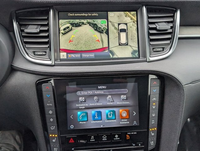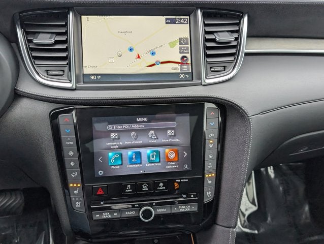 - Radio: Bose Performance Series Audio System -inc: 16 speakers, metallic speaker grilles on tweeters, INFINITI InTouch, INFINITI InTouch services, INFINITI InTouch dual display system w/upper 8" and lower 7" HD touch screens, wireless Apple CarPlay, Android Auto, HD radio technology, SiriusXM radio w/advanced audio features and 90-day complimentary trial, INFINITI voice recognition, Siri Eyes Free, Wi-Fi hotspot, active noise cancellation, navigation w/3D building graphics, 5 year complimentary access to premium traffic and MapCare, SiriusXM Traffic w/3 month complimentary trial access to real-time traffic information and SiriusXM Travel Link w/3 month complimentary trial access to weather, fuel prices, stock prices, sport scores, movie listings and parking
